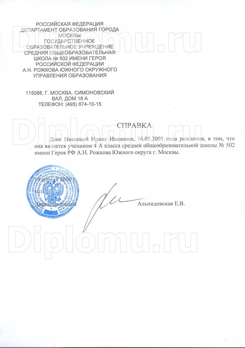 Покупая справку у нас, будьте уверены, что выглядеть она будет также, как если бы Вы реально получили ее школе, ссузе или вузе. Используем настоящие печати учебных заведений, копируем подписи! Обращайтесь!