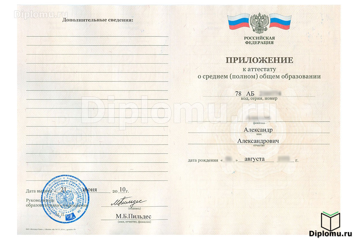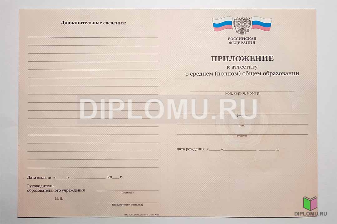 - Комплект: Аттестат + твёрдая обложка + приложение